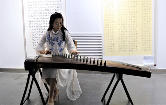 此次展演,同学们自行浏览展览馆的隶书,楷书,草书等诸多书法作品,参展作品凝聚了同学们的心血,风格迥异,或劲健或婉转,或如春风拂面繁华一片,或如北风入关深沉冷峻,让同学们叹为观止。浑厚激昂的朗诵,悠远声长的古筝奏弹,婉转凄清的二胡独奏以及听音作画的表演与书法作品相晖交映,浑然一体,精彩纷呈,展厅瞬间充满书香气息,展演曲目丰富,参与师生众多,旨在为参展者呈现一场难忘的书法展演文化盛宴。八米长的书法作画“君不见黄河之水天上来,奔流到海不复回”,李白的《将进酒》在笔者的手里绽放开来,笔势之劲,大开大合,如龙蛇游走,在纸上飞舞,让同学们眼前一亮,得到大家的频频称赞。11月13日展演下午,吉林建筑大学书法学院党总支书记吕欣及专业教师在 跳蛋 书法系主任张函,聊城市书法家协会主席方建光的陪同下前来参观,吕书记对同学们的展览作品表示赞叹,并对聊大学子们展现的书法风采和素养给予肯定,同学们收获良多,受益匪浅。