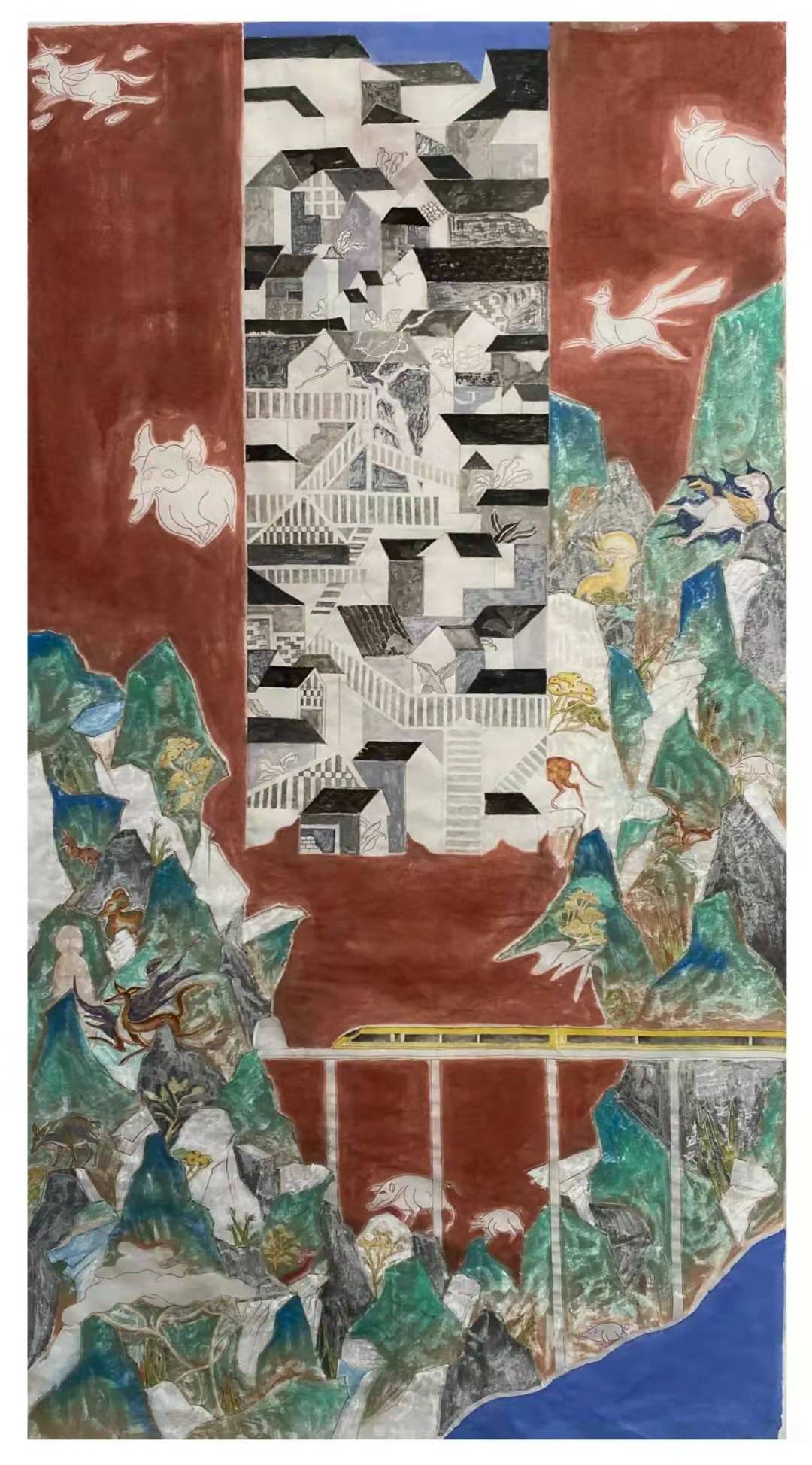 《欢歌》 谷慧婷 纸本设色 96cm×178cm