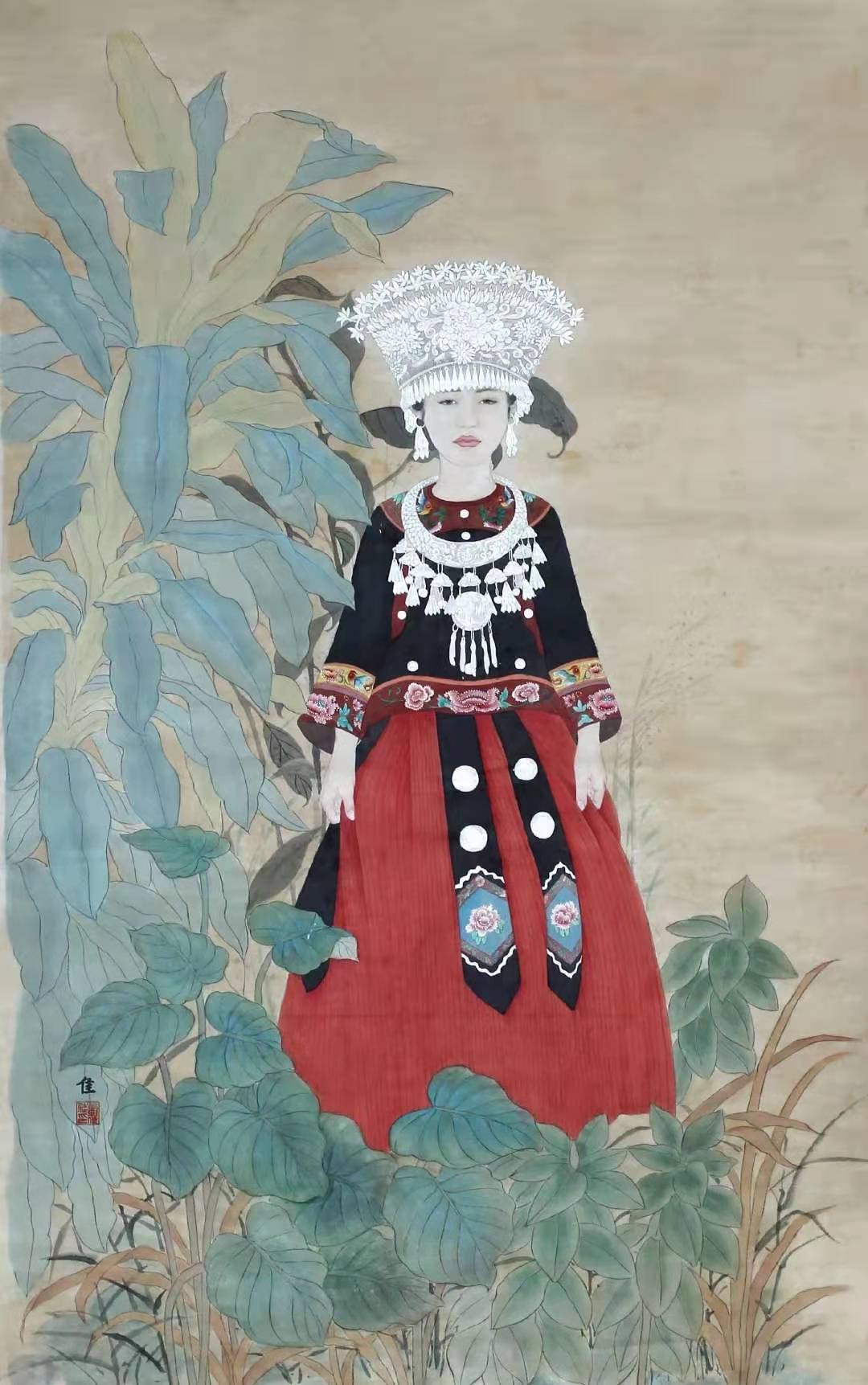 《祈盼》 郑佳佳 纸本设色 137cm×80cm
