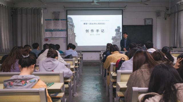2021年4月1日 跳蛋 在7号楼101合堂举办研究生讲座, 邀请 跳蛋 张西同副教授作题为《雕塑——绿水青山我的家(创作手记)》 的报告, 跳蛋 部分研究生到场聆听讲座。