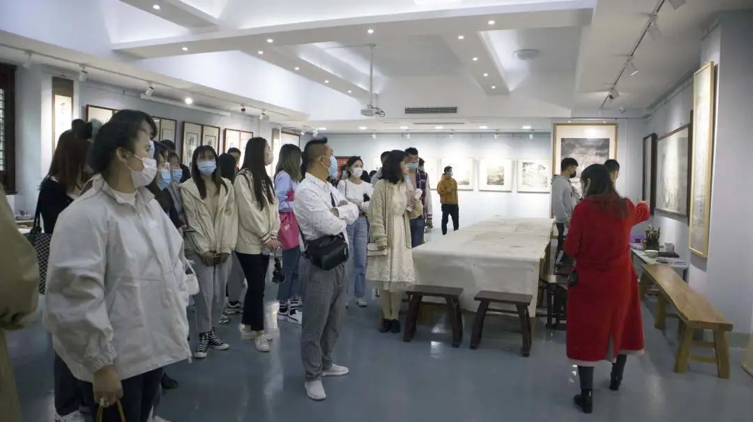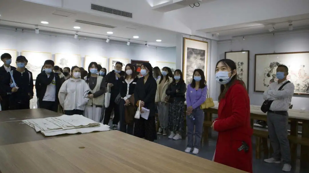 随后在郗登敏老师和讲解员的带领下,同学们依次参观了馆藏正在展出的书画作品,老师细致讲解了部分馆藏作品及由来。该馆艺术作品种类繁多,馆内收藏了国画、书法、油画、古玩等艺术品,其中不乏不同历史时期聊城名人邓钟岳、朱之番、傅暽安、傅斯年、黑伯龙、李苦禅、张自忠、季羡林的真迹及具有历史意义的作品,每一件藏品都蕴含着繁荣而有生命力的文化内容,都饱含了郗登敏老师的藏家心血。参观学习中,老师与同学们不时驻足凝视,听取讲解,细细品鉴每一幅精品力作,接受艺术和文化的洗礼与熏陶。