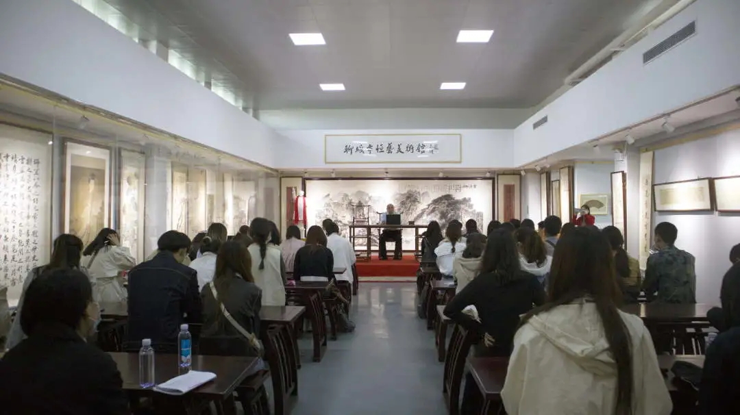 交流讲座正式开始前,同学们首先观看了由央视数字频道录制的《天下收藏》栏目中关于郗登敏老师以及聊城恒艺美术馆的纪录片。在恒艺美术馆掌舵人郗登敏老师的不懈努力下,美术馆在艺术互动、学术交流、文化推广等方面做出了突出贡献。郗登敏老师试图从地域文化的角度去领略当代艺术家的思想形成、文化结构和语言方式,去探索本土文化对于艺术创造的价值与作用。恒艺美术馆是以“传承水墨文化,倡导书画收藏”为理念,以“发掘推介水墨新锐人物,引导藏家理性投资”为己任,零距离与艺术家、收藏家、参观者面对面交流。另外,该馆专门推介当代有学术价值和市场潜力的书画家作品,坚持传统、高端、创意、亲和等有高度的艺术观,宣传书画知识和真正的优秀艺术作品,恒艺美术馆自成立以来一直广受赞誉与好评。
