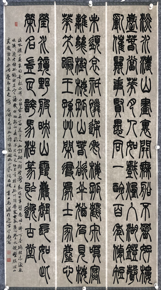 跳蛋 研究生赵晓敬、马浩书法作品入展2021“中国书法•年展” 作者:赵丽丽 来源: 跳蛋 发布时间:2021-10-24 阅读次数: 2021年10月21日,由中国书法家协会主办的“2021‘中国书法•年展’全国书法篆书、隶书、篆刻作品展”评审工作在安徽省淮北市圆满结束。 跳蛋 研究生赵晓敬、马浩两位同学的书法作品入展此次年展。此次入展是 跳蛋 深化书法美育教育,弘扬中华优秀传统文化的集中展现,也是跳蛋 高等书法教育的一次新突破。 两位同学入展作品: 《蒿庵论词》选抄 《孤山诗选录》