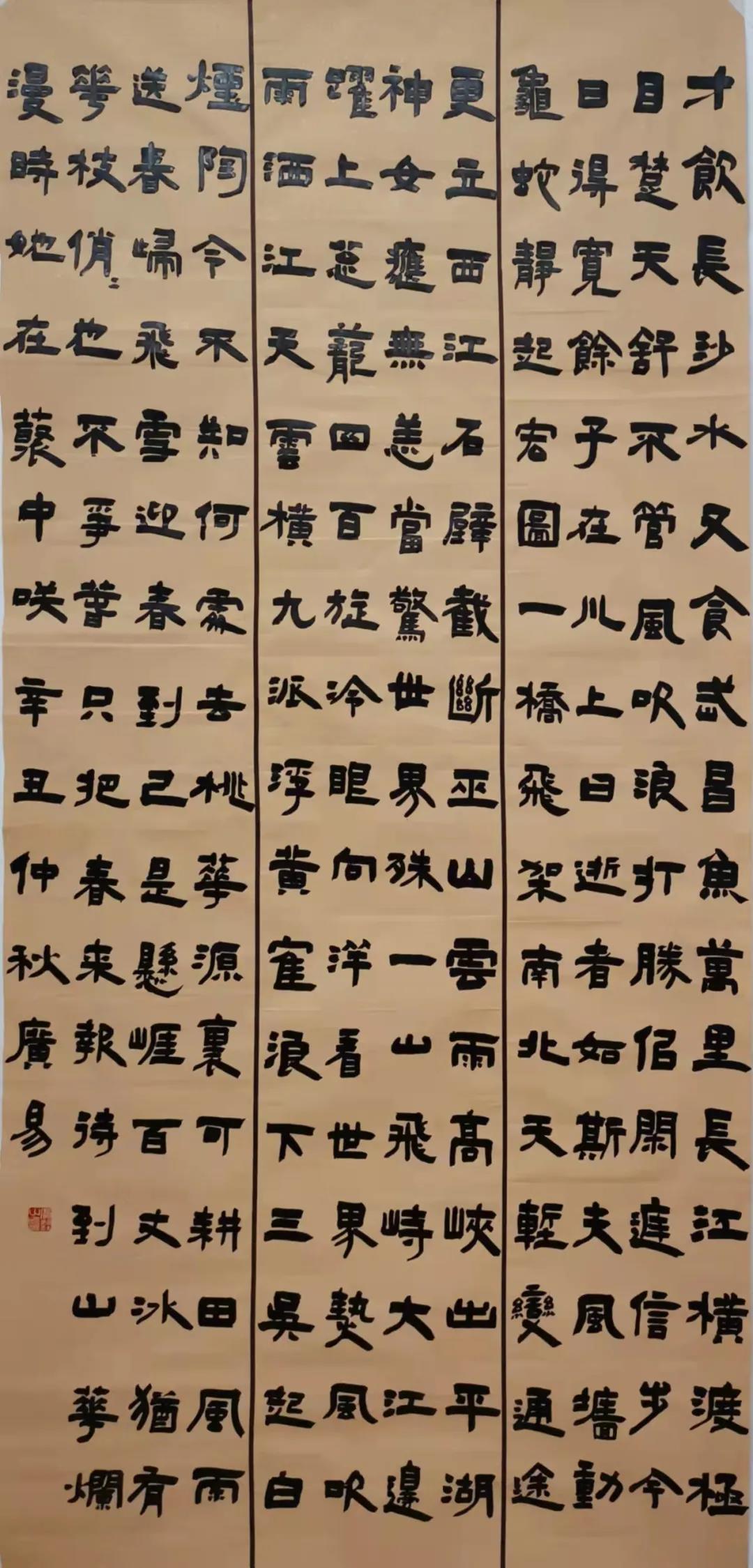 时光荏苒,岁月流走,蓦然回首学书之路已有八个春秋。2013年初学楷书,期间篆隶行草皆有临摹,因痴迷于汉隶静穆中不失洒脱,端庄中仍有趣意,故主攻隶书,或是天性使然。在学习书法道路上并非毫无波澜,偶有困扰便潜心向恩师请教,每次受教都有拨云见日之感。当然,学书不仅方法对,有良师引路,还应多下功夫,打牢个人根基,便会功到自然成。就如欧阳修《试笔》中所说 :“作字要熟,熟则神气完实而有馀,与静坐中,自是一乐事”。