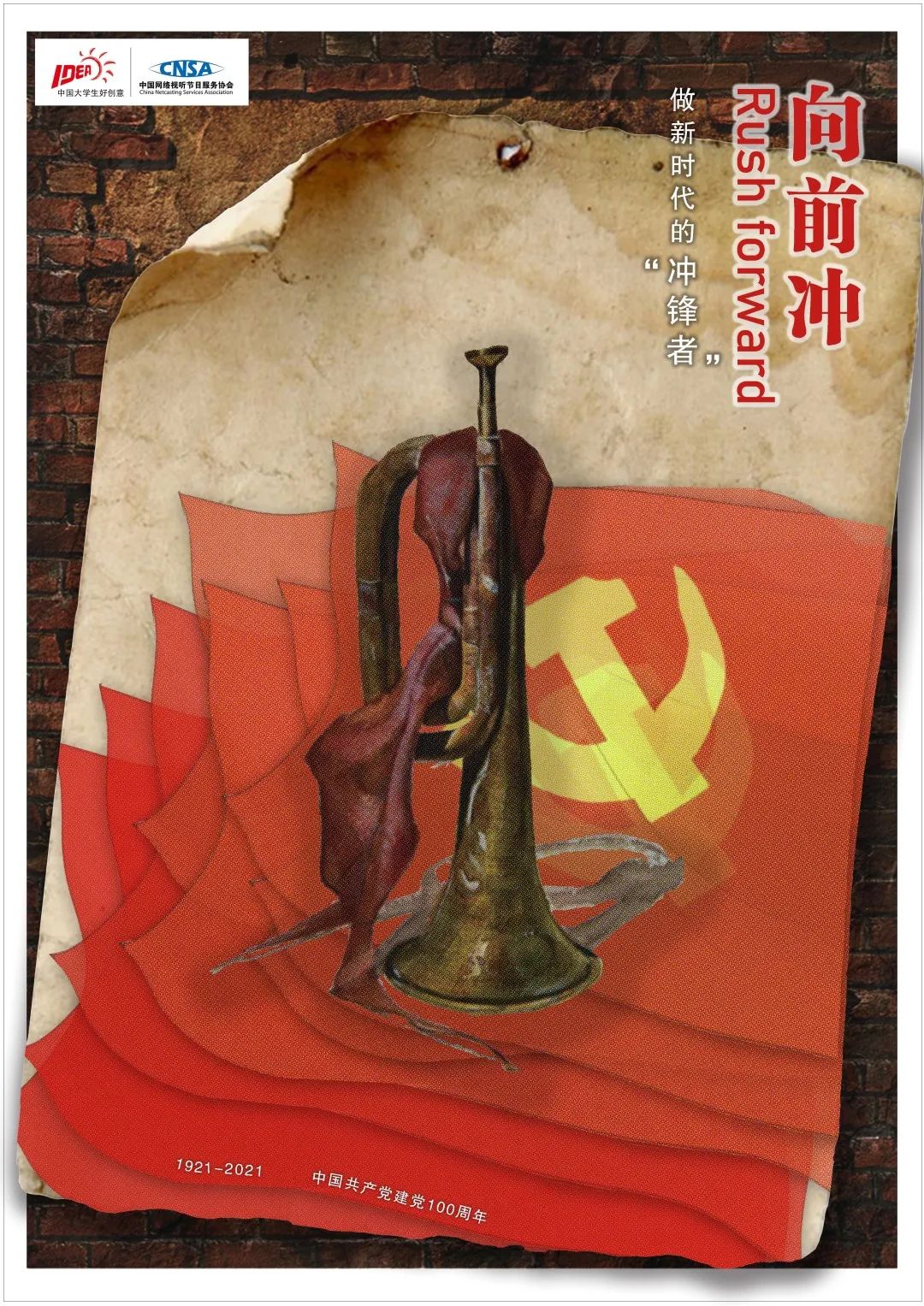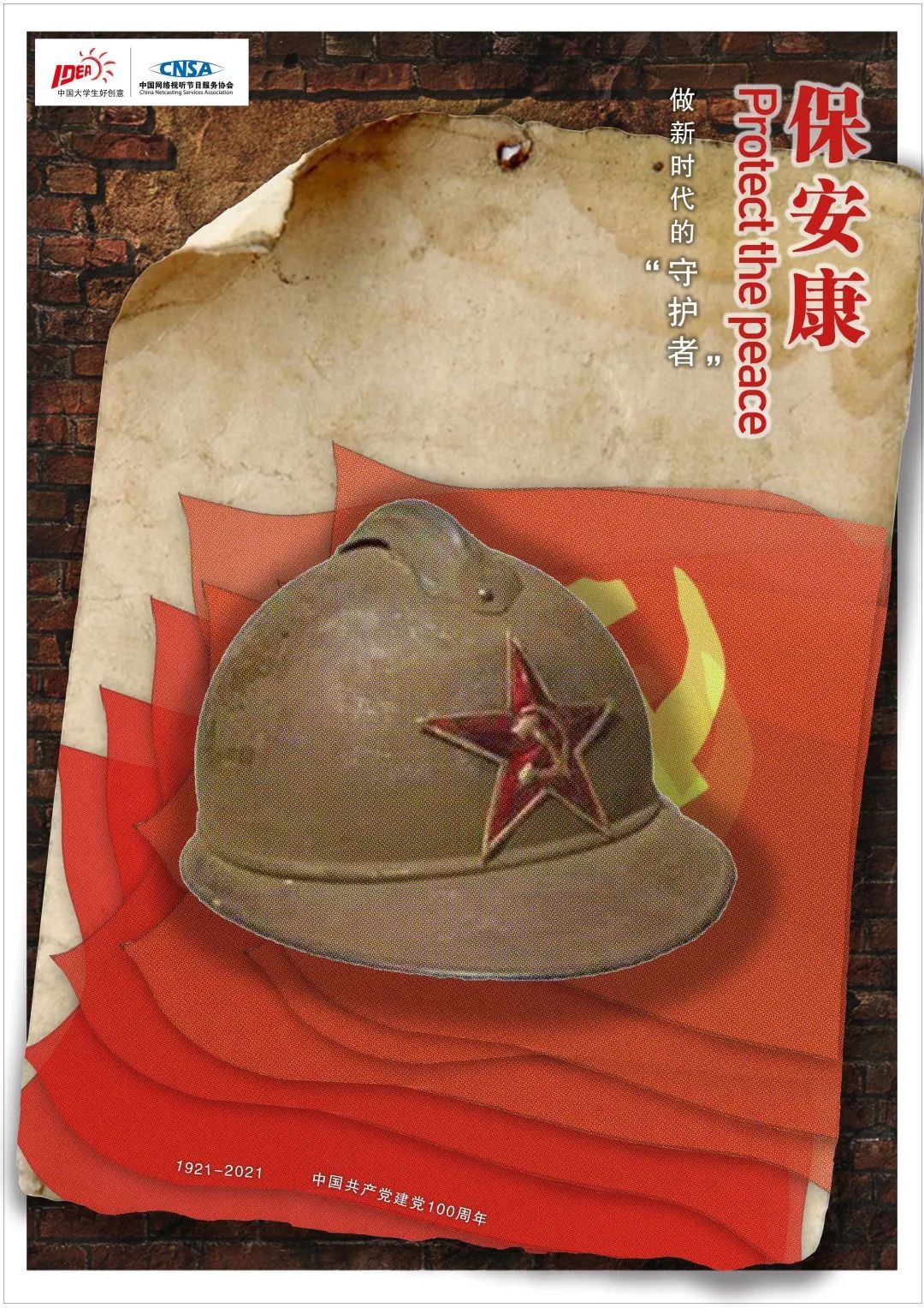 2021年9月海报设计《向前冲保安康》荣获第十三届全国大学生广告艺术大赛省赛三等奖、国赛优秀奖;