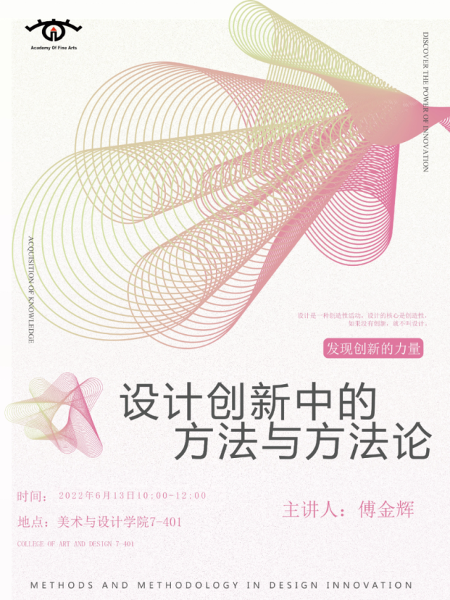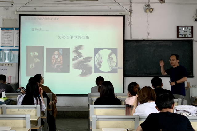 6月13日上午在7号楼401教室, 跳蛋 傅金辉副教授为2021级研究生作题为《设计创新中的方法与方法论》讲座。