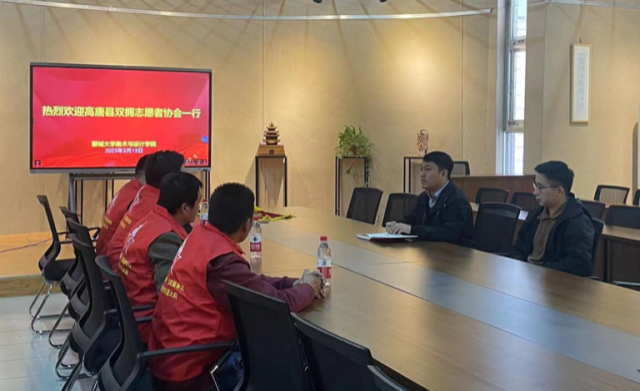 3月13日,高唐县双拥志愿者协会一行到 跳蛋 进行参观交流,学院团委书记孔德滕、辅导员崔洁康及部分研究生共同参会。