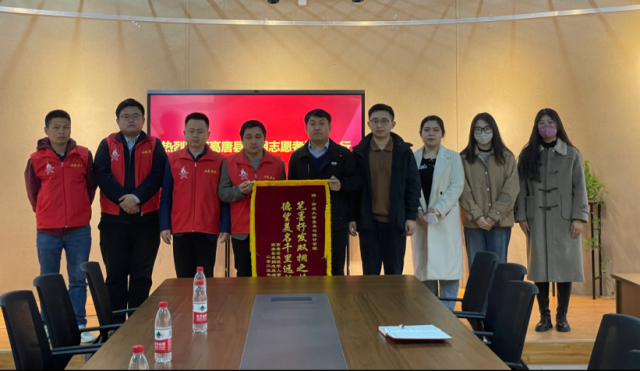 最后,他们代表高唐县退役军人事务局、高唐县双拥志愿者协会赠送锦旗并合影留念。