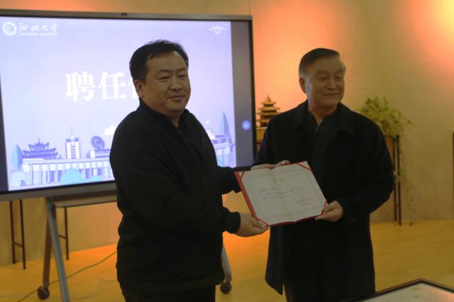 张兆林院长代表学院聘请王传成为硕士研究生创作指导教师。