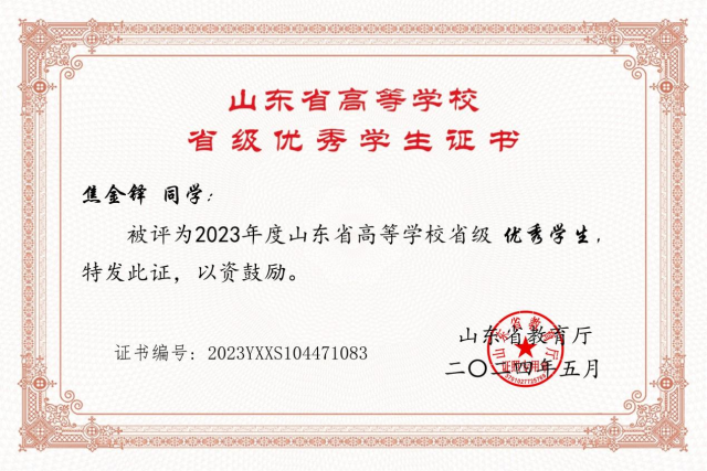 2023年12月荣获 跳蛋 研究生学业奖学金二等奖;