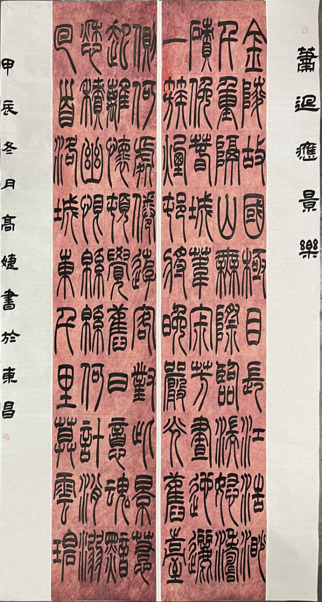 2024年1月作品《垂手扪心联》荣获山东省第七届大学生艺术展演书法和篆刻乙组二等奖;