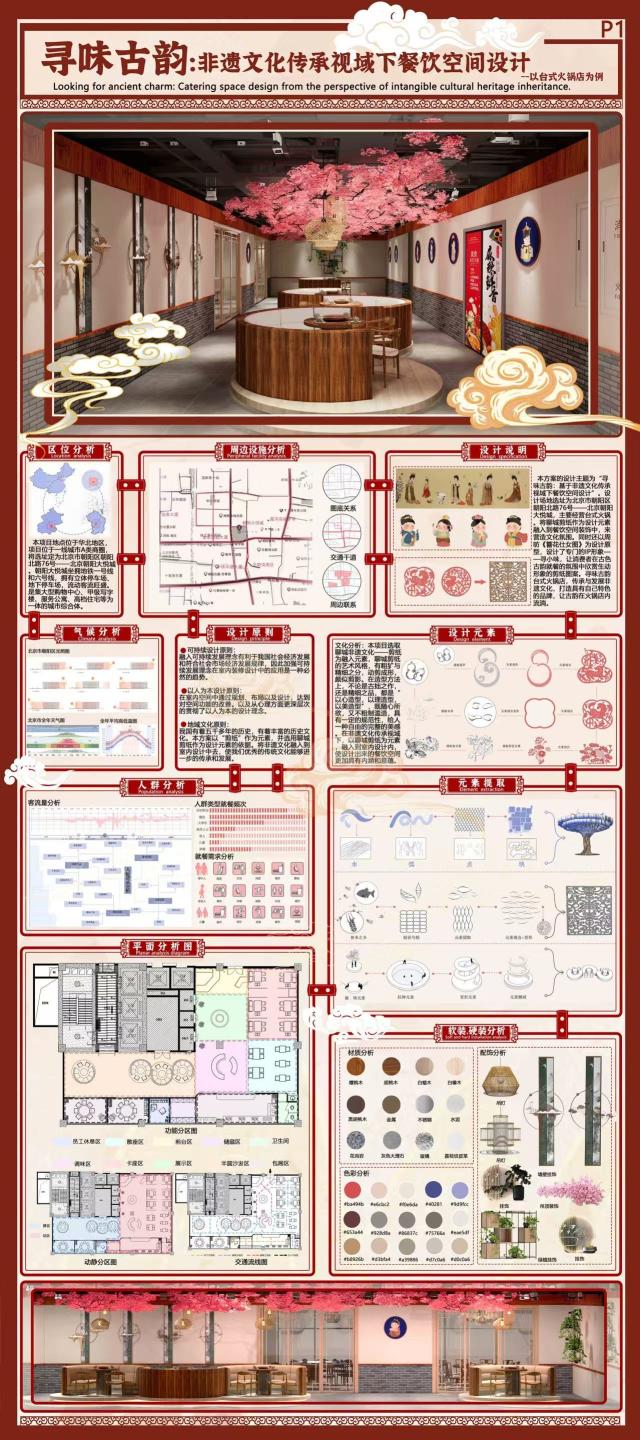 2023年11月作品《寻味古韵:非遗文化传承视域下餐饮空间设计——以台式火锅店为例》荣获第九届“中装杯”全国大学生环境设计大赛一等奖;