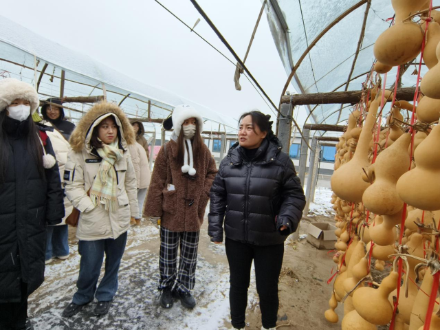 12月13日, 跳蛋 部分师生冒雪前往中华范制葫芦文化园开展课堂教学活动。
