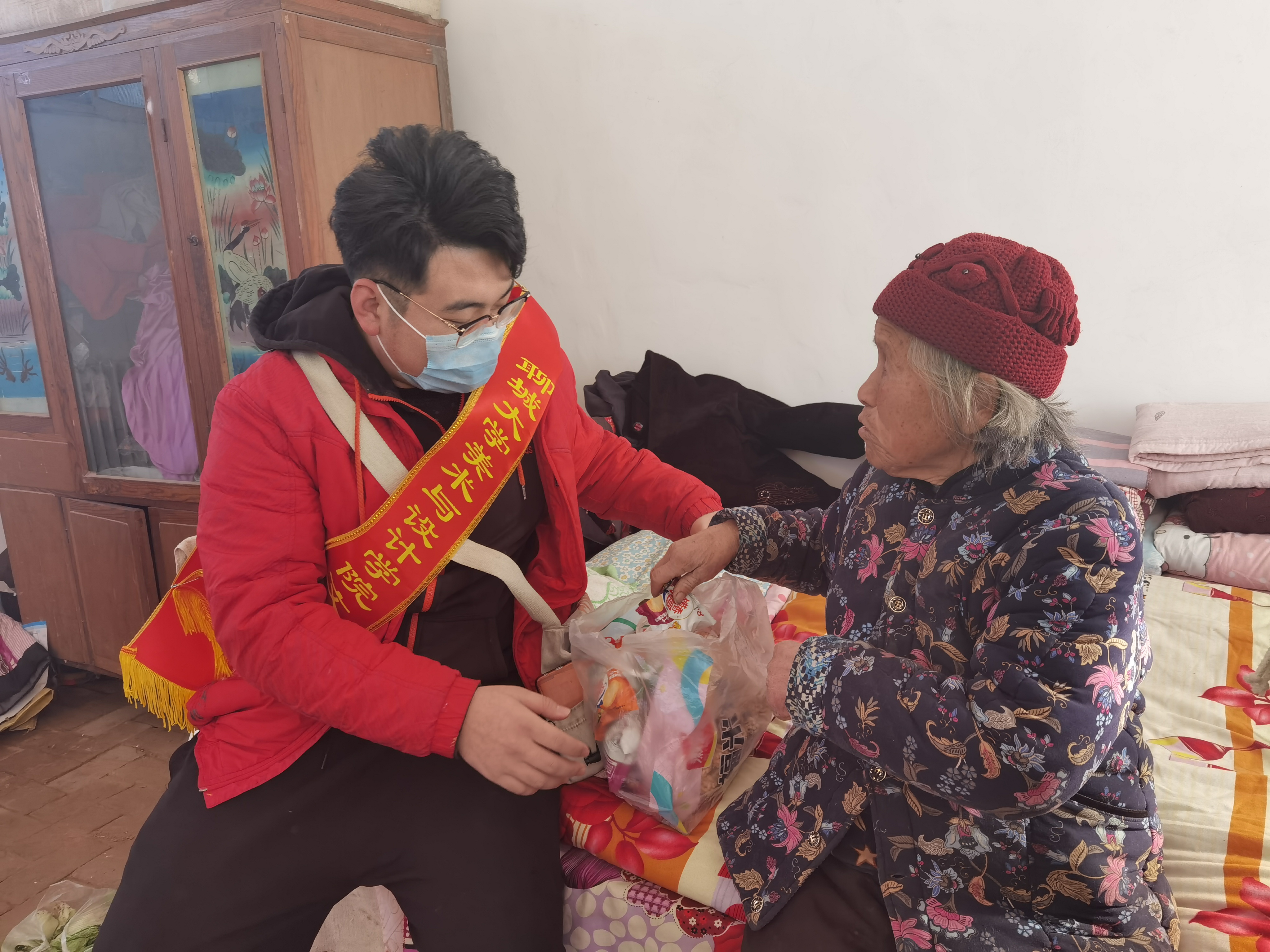 在当地村委会负责人的带领下对空巢老人家进行走访慰问,活动参与人员分两组分别走访村内空巢老人,对老人家庭情况、收入情况、健康情况等进行了询问了解,同时为空巢老人送上水果、零食等生活用品,帮助老人打扫室内外卫生,陪老人话家常,并且提前送上新春祝福,老人们看到青春洋溢的志愿者们都十分开心,在小小一间屋子里充满了欢声笑语,当谈到不在身边的儿女时,老人们更多的是理解和体谅,对于他们来说,所需要的更多不是经济上和物质上的供养,更重要的是精神上的慰藉,莫要让老人们空了“巢”也空了心。志愿者的到来给空巢老人们带去心灵上的慰藉,缓解老人的孤独感,让大家更加了解社会关爱,关注老年人群体,从中学会关爱与感恩。