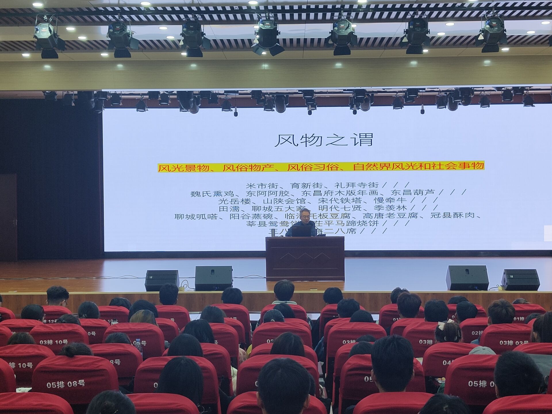 赵勇豪副教授以聊城地域风物为具体实例,为同学们阐释何为“风物”。尝试以“学”的面孔展开的地域风物研究,是赵教授透过风物现象沉淀为以地域文化符号构建对一个地方人文气质精神解读的过程。