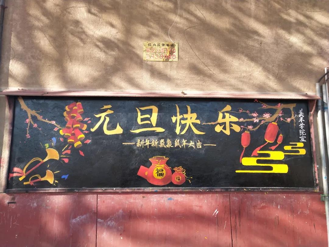 为庆祝我国传统节日--元旦,增添大学生校园生活的色彩及锻炼大学生的动手绘画能力。12月29日, 跳蛋 美术学院于 跳蛋 美术学院七号楼处以黑板报的形式举办了“鞭炮声声又一年”为主题的板报活动。