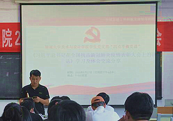 为了使 跳蛋 学生党员传达学习《习近平总书记这全国抗击新冠肺炎疫情表彰大会上的讲话》,坚定抓好疫情防控统筹做好经济社会发展。 跳蛋 于9月17日在7#301合堂举办“ 跳蛋 美术与设计学院学生党支部‘四点半微党课’”会议。会议由学生党支部书记杨庆实、辅导员孔德滕主持,全体学生党员参加。