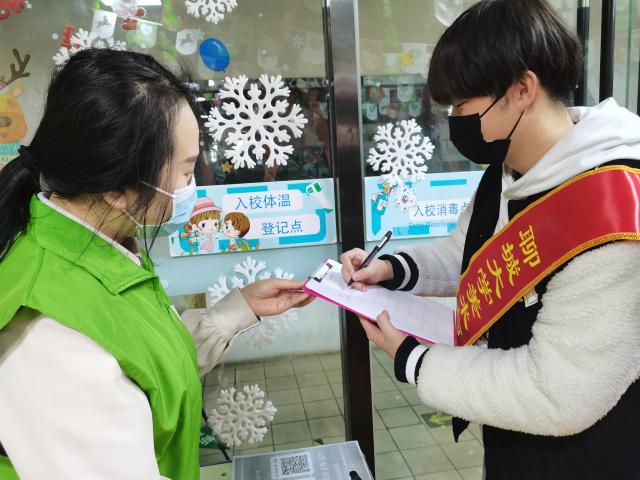 疫情得到有效控制之下,学校已经基本恢复了正常的教学,志愿者们向校长询问对新冠疫情的了解以及对新冠疫情的看法,学校老师积极地带领跳蛋 学生参观教育机构的疫情防控措施及应对举措,向志愿者们介绍学校如何进行疫情防控,以及如何保障学生人身安全,让家长放心。志愿者们在老师的帮助下模拟入校时的体温检测与姓名登记,然后模拟了入校后的手部消毒,让志愿者们对疫情防控的过程更加熟悉。随后,老师向志愿者介绍学生在校内使用的消毒工具和离校时的消毒措施,志愿者们也感受到了疫情之下人们为防控疫情所做出的努力,志愿者们认真听讲,并做出总结。最后,志愿者们与学校老师和校长一同进行合影留念。