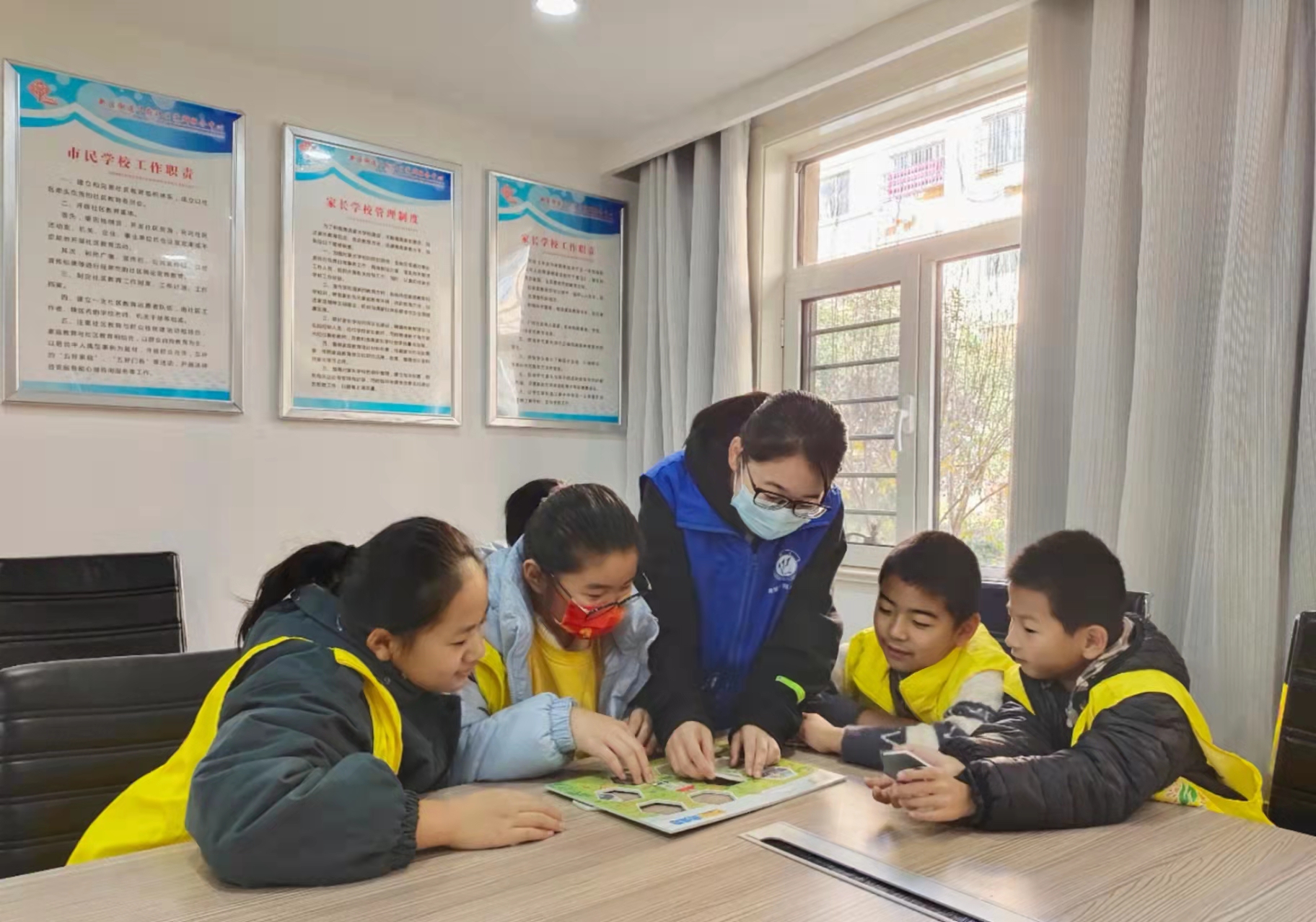 遵守交通法,安全你我他。为了正确引导孩子们遵守交通规则,认识各个交通标识,2021年11月14日, 跳蛋 “与美同行”志愿服务协会于聊城市东昌府区新区街道华府社区举办了“七彩四点半--交通安全奇遇记”的活动。