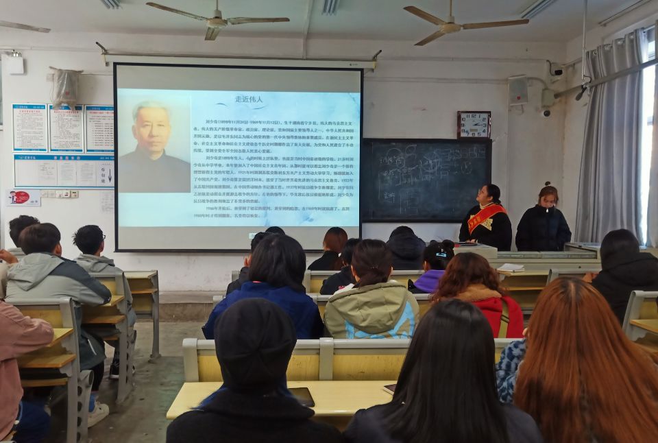 此次活动共分为二个阶段。活动伊始,同学们有序到达活动场地,通过组织者对伟人刘少奇的讲述使同学们了解了刘少奇生平光辉事迹以及对祖国的贡献的点点滴滴,为同学们普及了《刘少奇在瑞金的故事》以及“维护工人阶级团结”的优秀作为。活动进行第二阶段,通过同学们所搜集的材料与故事集以及朗读刘少奇同志的简介与事件,不仅使同学们对刘少奇同志有了深刻印象,又增加了同学们对伟人事迹的掌握,有效达到了相互学习促进作用。随后,组织者为同学们放映关于伟人刘少奇的影片,通过影片走进他的生活背景,学习其英雄事迹,对刘少奇同志增添了更深层的了解。而通过对影片的观看也将活动推向高潮,同学们深感伟人为国家所付出的贡献与不易,激发了同学们向伟人学习,效仿伟人优良品质,为祖国献出一份力。