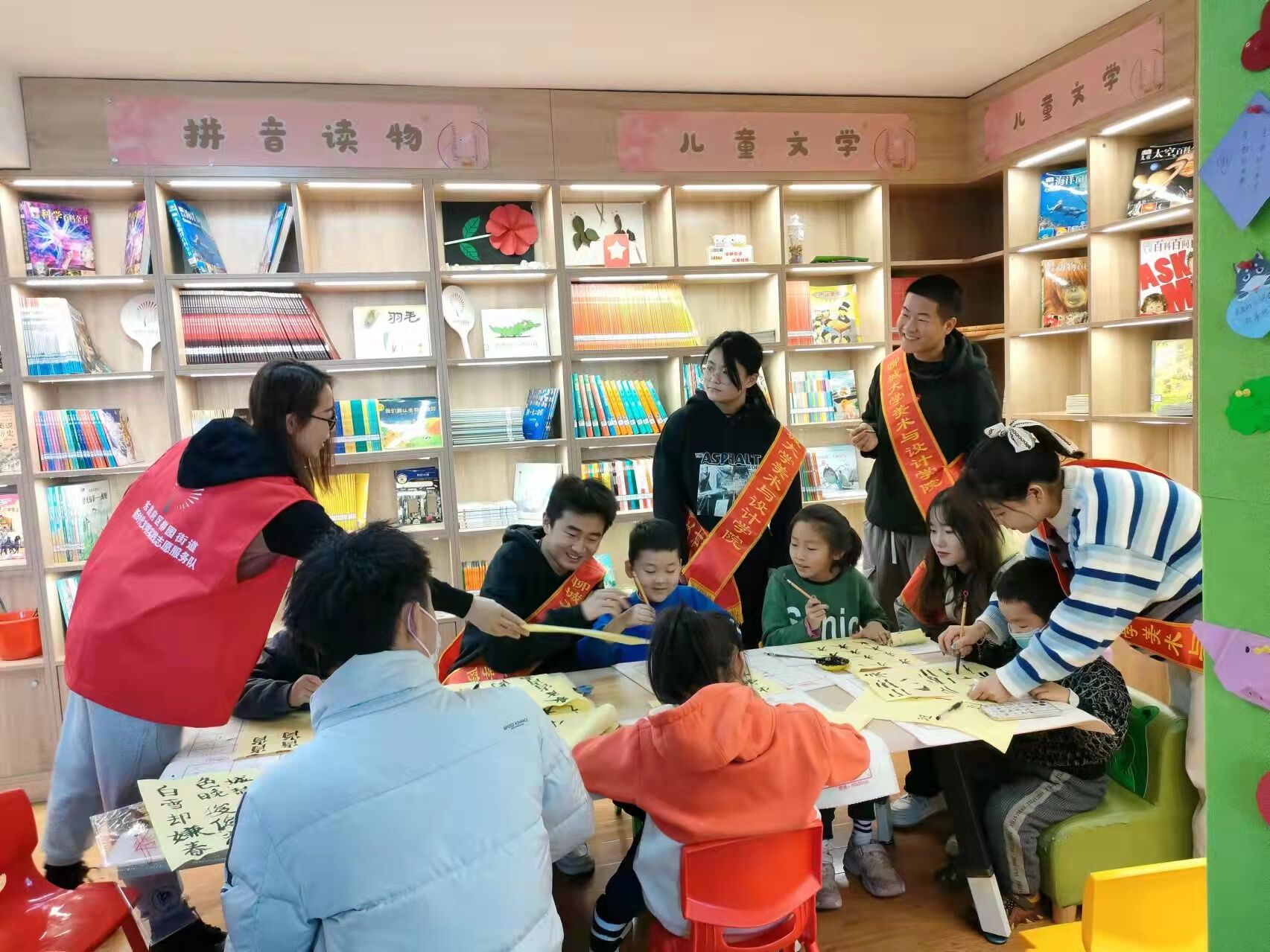 为培养小朋友们的兴趣爱好,加强对书法的认识,提高小朋友们学习书法的技巧,养成写字的好习惯。12月26日, 跳蛋 于水韵社区开展“智慧课堂,相伴童行”志愿公益活动。