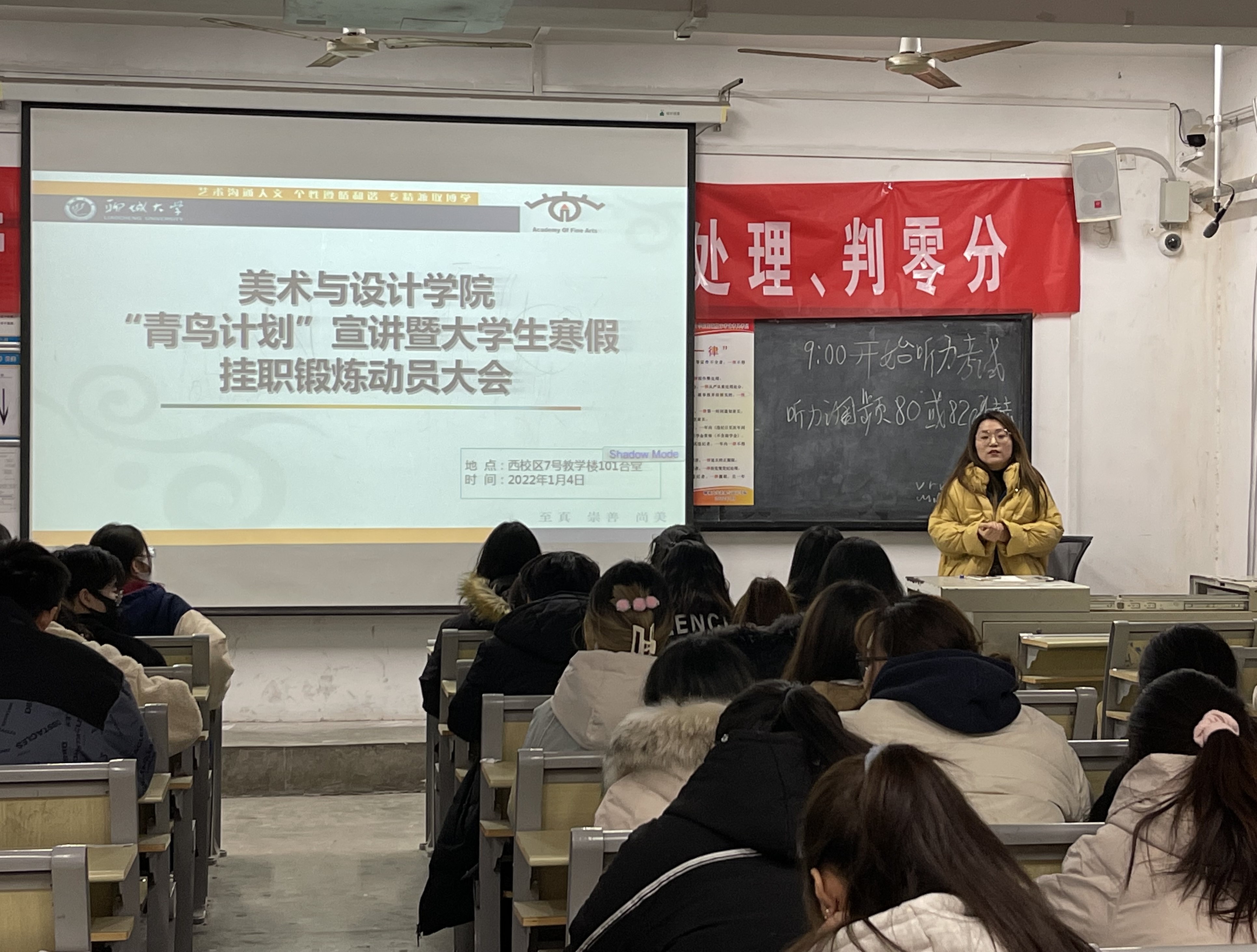为积极响应山东省委号召,支持服从全省“招才引智”大局,更好服务大学生就业,1月4日, 跳蛋 于7#101合堂开展“2022年‘青鸟计划’寒假挂职锻炼动员大会”。 跳蛋 辅导员朱晴及 跳蛋 2020级、2021级学生代表参与本次大会。
