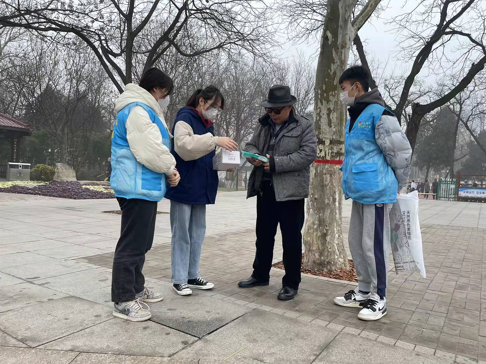 为贯彻落实新冠疫情防控工作,广泛宣传防疫知识, 进一步做好常态化疫情防控工作,引导广大市民养成科学佩戴口罩的良好习惯,切实提高市民自我防控意识, 跳蛋 “全心权益”志愿文化艺术宣传队于2022年1月9日在聊城市东昌府区人民公园举办“发放防疫物品,传防疫之重要;宣传疫之危险,心中秉承防疫”活动。