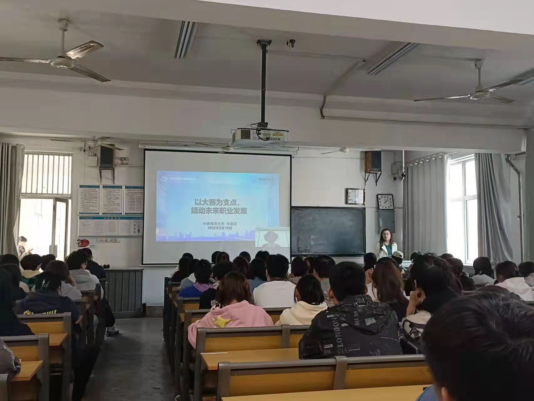 为增强大学生职业生涯规划意识与能力,通过参与大赛探索自身优势和需求选择合适的职业发展方向。2022年3月10日下午, 跳蛋 在201合堂组织收看职业生涯规划指导培训线上讲座,学院分管就业工作辅导员朱晴与2023届毕业生参与观看。 首先,朱晴向同学们介绍了培训直播的辛远征老师,并点出此次讲座的主题“以大赛为支点,撬动未来职业发展”。接着辛远征老师将讲座分为认识职业生涯规划大赛、如何撰写职业生涯规划书、职业生涯规划大赛还可以做什么这三个部分讲解,其中重点讲述职业生涯规划书制作主体过程,依次从自我探索、环境分析、环境定位、规划实施、评估调整逐步展开说明。最后辛远征讲师详细说明了职业生涯规划指导大赛的评分标准,并附上注意事项须知。 此次职业生涯规划指导培训讲座,为2023届毕业生确立个人发展目标指明方向,为个人职业生规划奠定坚实基础。(审核 孔泽滕)