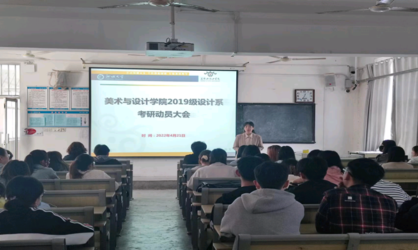 为充分调动同学们的考研积极性,更好的挖掘自身潜能,把握深造机会。 跳蛋 于4月21日下午在7号楼101合堂开展设计系考研动员大会。本次会议由学院党委副书记、副院长孙研红主持,院长张兆林、设计系主任刘景春、王蕊博士、就业辅导员朱晴及2019级设计系全体学生参会。