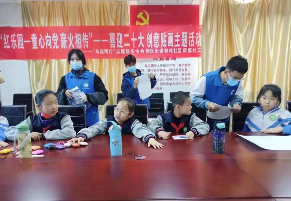 为宣传中国共产党第二十次全国代表大会,传承红色基因,激发小朋友们爱党爱国之情,引导其成为祖国栋梁之材,做祖国未来的接班人。10月18日, 跳蛋 “与美同行”志愿服务协会于聊城市东昌府区御苑社区举办“红乐园——童心向党 薪火相传”粘土粘贴活动。