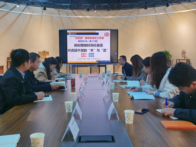 11月4日下午, 跳蛋 “创艺家”辅导员成长工作室在西校区7号楼113室举办第十三期《新时期做好高校基层共青团干部的“术”与“道”》主题沙龙。会议邀请岳增刚、李姮、相萌萌三位优秀老团干主讲,由工作室主要成员、计算机学院专职辅导员李佳雯主持。