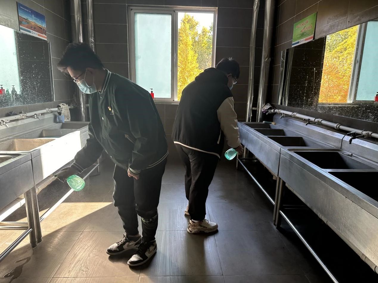 在消杀过程中,学生党员们戴着口罩,按照卫生消毒管理的标准规范操作,对宿舍楼内的寝室、楼道、卫生间、洗漱台、门把手等重点区域进行了全面而细致的消杀工作。他们认真履行了自身职责,切实为同学们的安全健康保驾护航。