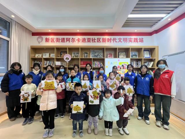 为落实立德树人的根本任务,丰富小朋友们的假期生活和锻炼小朋友们的动手能力,12月2日, 跳蛋 “与美同行”志愿服务协会于阿尔卡迪亚社区举办“落叶成画绘美景 同心喜迎新时代”主题手工活动。