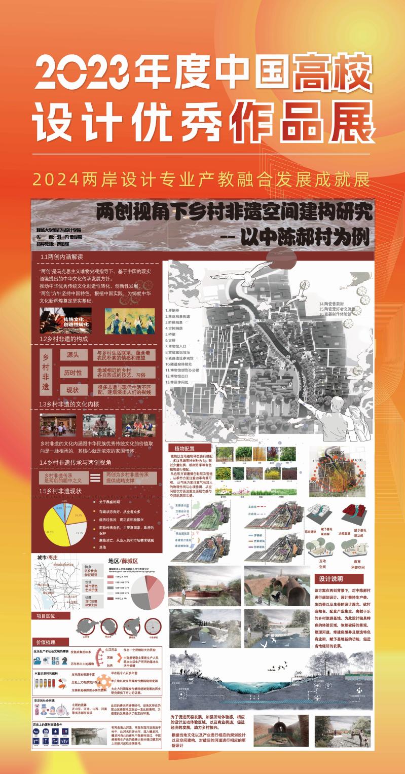跳蛋 入选“2023年度中国环境设计专业优秀院系风采展/2023年度中国高校设计教学成果展”,环境设计专业获奖作品“寻味古韵:非遗文化传承视域下餐饮空间深化设计”“两创视角下乡村非遗空间建构研究—以中陈郝村为例”“只有乡如故—地域文化视角下的蜀山村景观活力营造”入选“2023年度中国高校设计优秀作品展”。