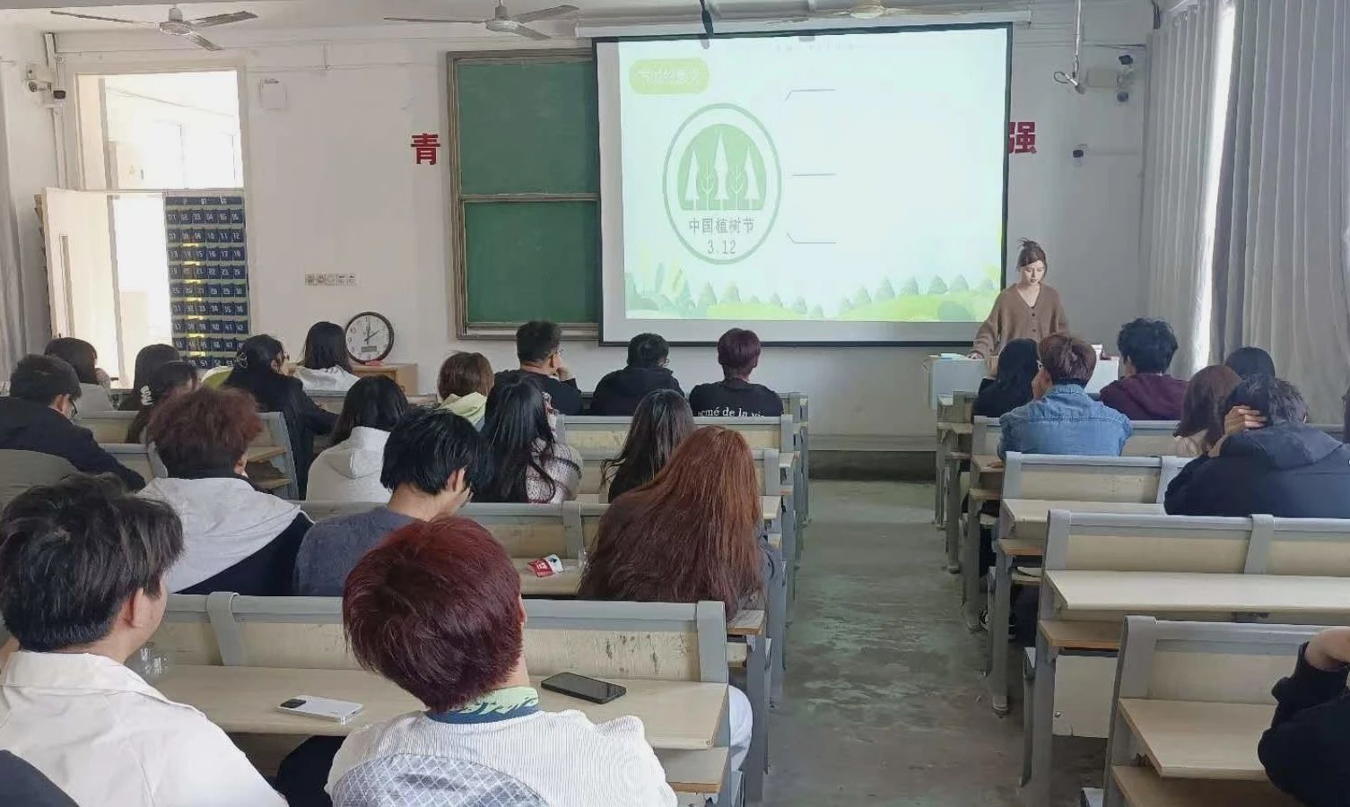 活动伊始,负责人用PPT向同学们讲解了植树节的相关内容,并以猜字谜的形式与同学们进行互动,以增强同学们的环保意识和生态文明观念,帮助同学们养成绿色低碳的理念。活动中,负责人让同学们自己收集瓶子并分发种子,同时通过播放视频增强同学们对植树节的历史理解及种植兴趣。经过一旦努力,同学们的小小"塑料瓶"中都栽满了种子。负责人鼓励大家今后要积极参与植树节相关活动,弘扬我国优秀传统节日。
