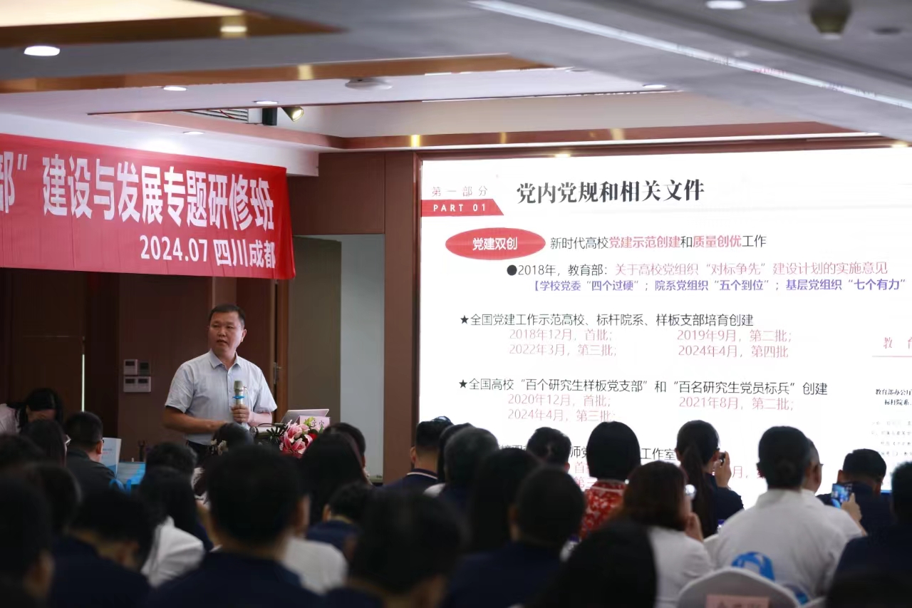 专题研修活动中,四川大学黎红友分享了“新时代高校辅导员工作室精细化体系构建与实践探索”,中北大学顾宁分享了“构建五位一体国防育人体系的探索和实践”, 跳蛋 杨庆实分享了“全国党建工作样板支部建设实践与探索”,西南交通大学孔祥彬分享了“凝聚力视角下的优秀班团建设”,江西理工大学饶先发交流了“新时代高校辅导员名师工作室建设的探索与思考”,西南石油大学伍晓芸汇报了“基于扎根理论的高校辅导员工作室建设路径研究”,成都航空职业技术学院蒋晓敏带来了“生成式人工智能赋能样板支部建设的路径研究”,四川传媒学院陈亮分享了“高校党建双创背景下,样板支部建设的路径研究”,雅安职业技术学院张晓惜交流了“互联网时代背景下辅导员思政教育微信平台建设工作探析”,山西工程技术学院郭芳汇报了“学生党建1+N组织育人模式研究”。
