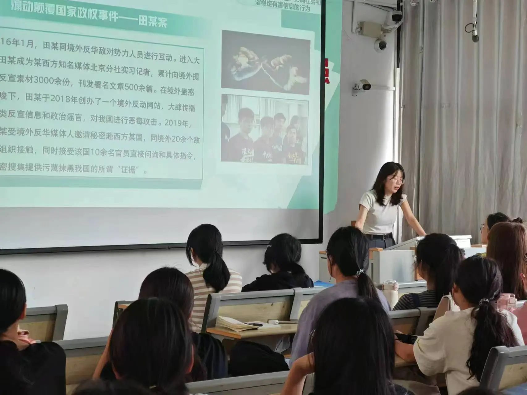 为提高学生们的网络自我保护能力, 跳蛋 张雅琪老师为新生讲解网络素养。她表示在信息爆炸的时代,网络已成为青少年获取知识、交流思想的重要平台,然而,网络空间的复杂性也带来了诸多挑战。随后,张雅琪老师引导学生们学会从多个角度分析网络信息的真伪,强调在享受网络便利的同时,必须保护好个人隐私,尊重他人,遵守网络法律法规。