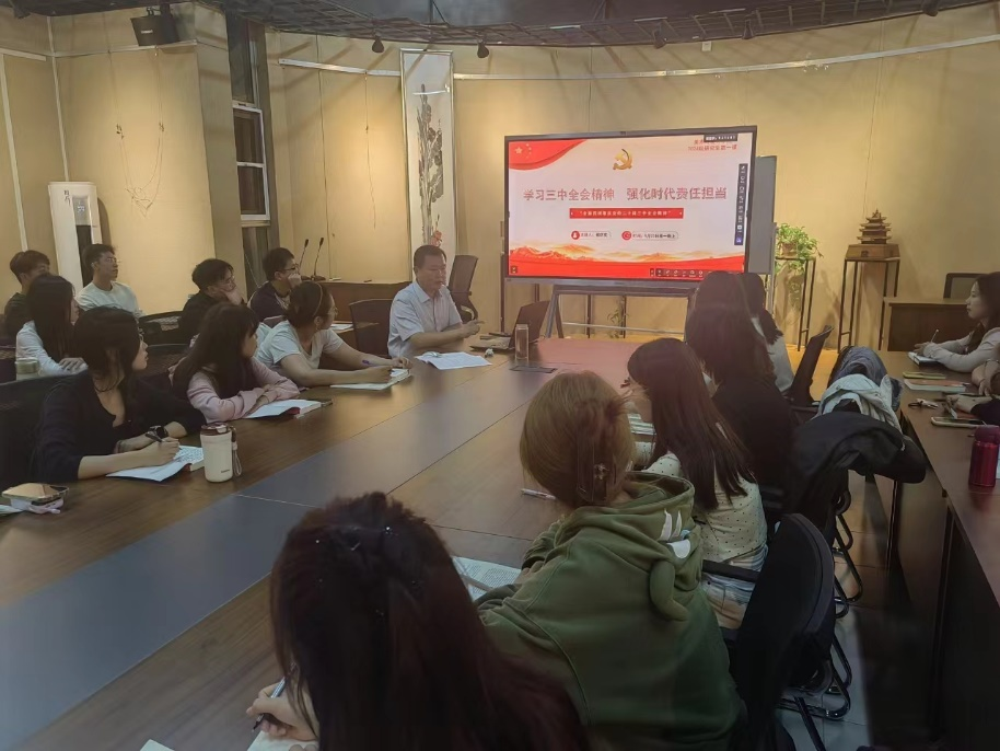 为深入学习贯彻党的二十届三中全会精神,9月21日, 跳蛋 党委书记杨庆实于西校区七号楼113多功能厅讲授以“学习三中全会精神 强化时代责任担”为主题的党课,全体2024级研究生参加党课学习。