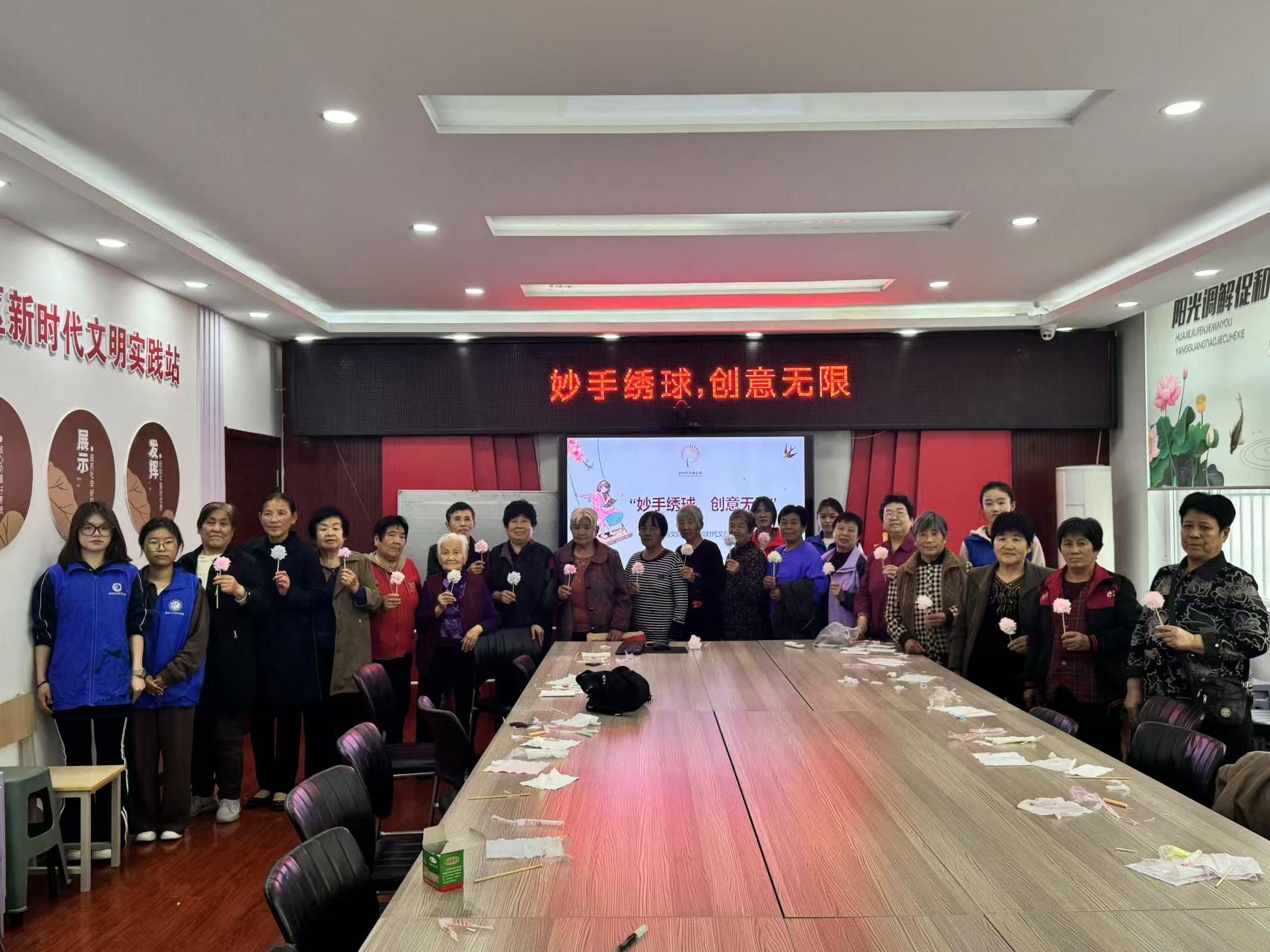 为丰富老人们的精神文化生活,推广创意手工,营造积极有趣的艺术氛围,10月17日, 跳蛋 “与美同行”志愿服务协会于文锦苑社区举办“妙手绣球,创意无限”主题系列活动。