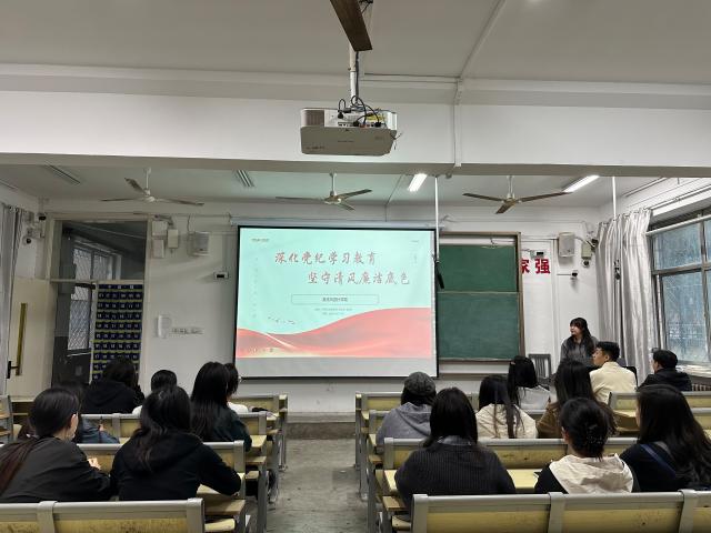 为进一步提高学生党员的理论水平,提升党员素养,10月17日下午, 跳蛋 学生党员在学院一楼101合堂举行“四点半”微党课(2024年第10期│总80期),本次微党课以“深化党纪学习教育,坚守清风廉洁底色”为主题进行学习教育,本期微党课由研究生党支部第十党小组副组长王天宇主持。