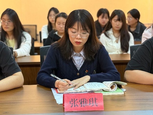 研究生党支部书记许中美、组织员张雅琪结合《中国共产党发展党员工作细则》等要求规定,强调了发展党员工作的总要求,并详细介绍了发展党员的五个阶段、二十五个步骤,从申请入党、入党积极分子的确定和培养教育、发展对象的确定和考察、预备党员的接收、预备党员的教育考察和转正等每一个环节都进行了具体说明。