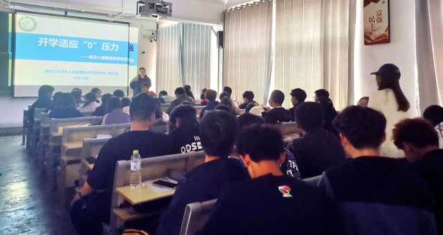 为树立大一新生积极向上的心态,提升身心健康水平,10月18日下午, 跳蛋 邀请 跳蛋 心理中心柳方舟老师为大一新生做关于“开学适应‘0’压力”的讲座,2024级各专业100名新生参加了此次大讲堂。