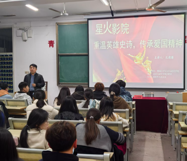 为进一步激发学生的爱国情怀,为传承红色基因,弘扬伟大革命精神,激发同学们的爱国热情与使命感,弘扬大无畏革命精神,10月24日晚, 跳蛋 在7#301举办“重温英雄史诗,传承爱国精神”星火影院观影活动。本次活动由学院团委书记孔德滕主持,学院24级全体班委参加本次活动。