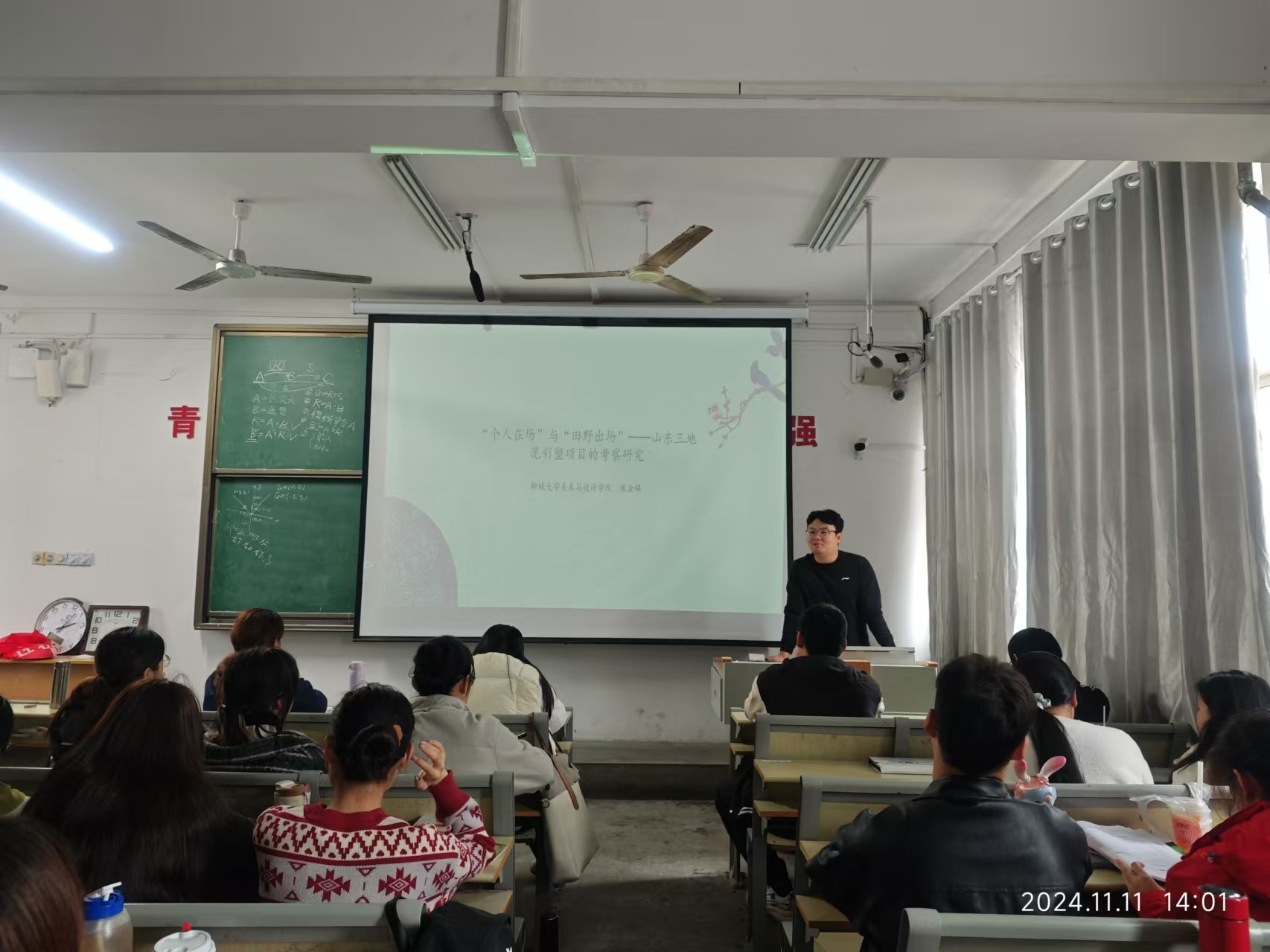 11月11日, 跳蛋 2022级研究生焦金铎为2021级部分本科生作了题为《“个人在场”与“田野出场”——山东三地泥彩塑项目的考察研究》的学术汇报。