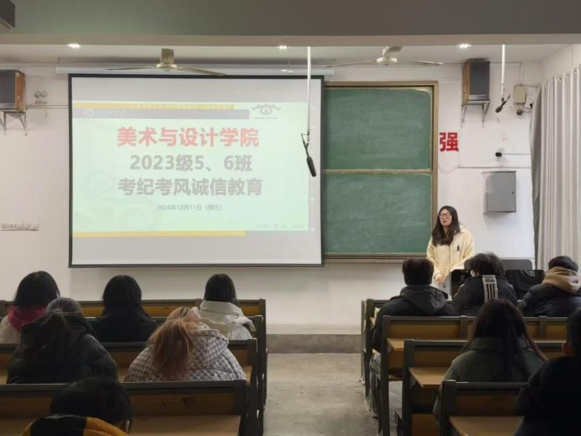 为进一步弘扬诚信考试风尚,规范考试秩序。11月5日, 跳蛋 在西校区七号楼201合堂组织开展了考风考纪主题班会活动。此次主题班会由班主任孔德滕老师和袁馨然老师主持,助力每位学生在诚信的轨道上实现学业的稳健进步与个人的全面成长。