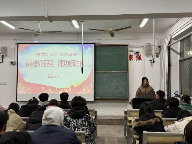 为深入学习领会会议精神,激发同学们的使命感与责任感。2月20日, 跳蛋 西校区七号楼101合堂开展以“奋进新征程,建功新时代”为主题的春季学生“开学第一课”,学习贯彻党的二十大和二十届三中全会精神。