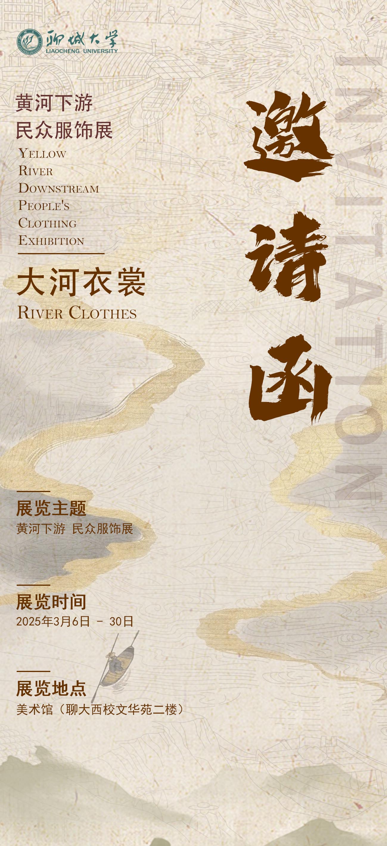明日,让我们循着衣襟上的纹路,溯源母亲河的脉搏,聆听岁月缝纫的故事。以指尖丈量文明的厚度,用目光打捞沉浮的华彩。当灯光照射在展柜的玻璃,这些沉睡的衣裳将在您的注视中苏醒。3月6日 跳蛋 美术馆,我们不见不散!