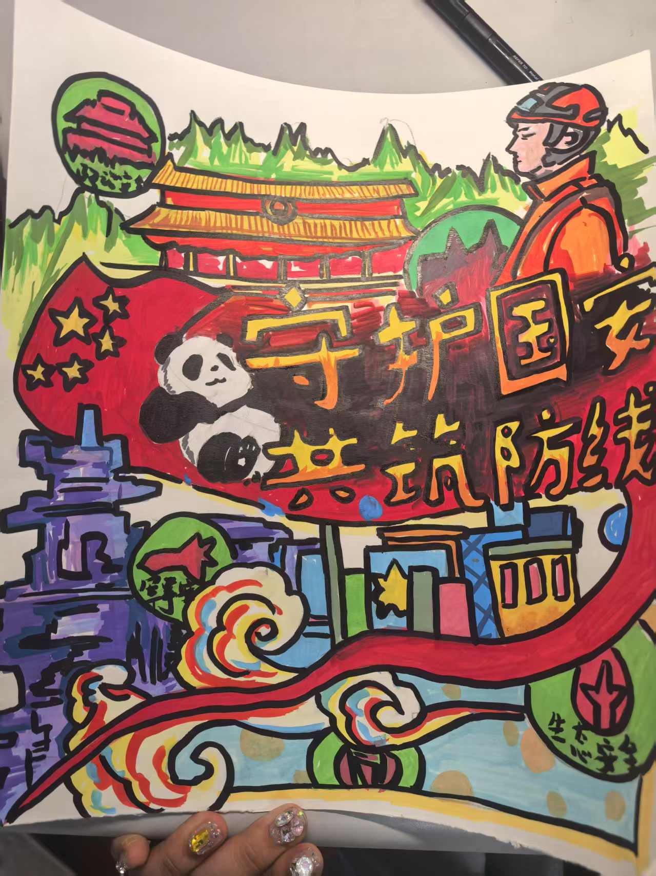 在作品收集过程中,工作人员重点关注海报是否精准传达国家安全理念,内容是否涵盖国防重要元素,如军事力量展示、国家安全法规宣传等。同时,也对海报的创意设计、色彩搭配进行了考量,确保作品既能在视觉上吸引人,又能在内涵上发人深省,有力推动国家安全知识的传播。因此,在创作过程中同学们深入思考国家安全与个人的紧密联系,充分发挥创新思维和艺术才华,从不同角度出发,有的在海报中描绘了边防战士坚守岗位的挺拔身姿,展现军人保家卫国的奉献精神;有的则通过现代化武器装备的绘制,彰显国家国防力量的日益强大;还有的以生动的画面呼吁大家关注国家安全的方方面面,从网络安全到资源安全等,将内心的爱国情怀转化为一幅幅精美的海报作品。