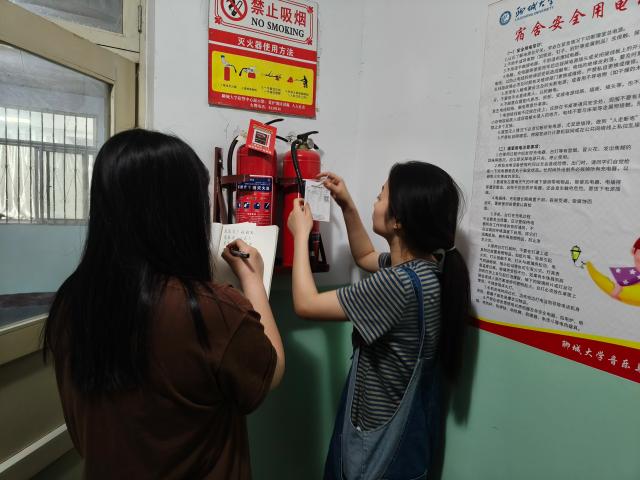 检查启动前,服务中心明确标准:本次检查聚焦生活环境安全、消防设施安全两大维度,为同学们的宿舍生活织密“安全网”。生活环境安全方面,紧盯卫生死角、通道堵塞问题以及家具稳固性、水电设备运行状况;消防设施安全严格核查灭火器、疏散通道等关键环节。检查过程中,部门同学逐层逐间细致排查:查看水龙头、插座有无漏水漏电现象;检查地面、阳台是否存在杂物堆积情况;核对灭火器压力值、有效期,测试应急照明与安全标识是否正常。