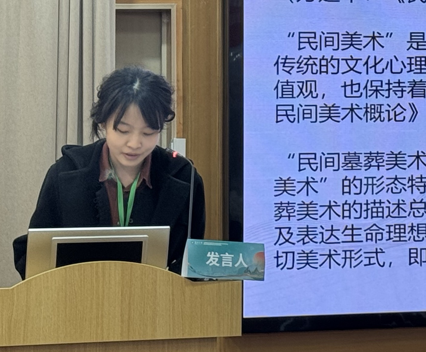 分论坛中, 跳蛋 师生凭借扎实的研究积累展现了学术风采。郑天一老师以《人神互惠:民间信仰角色塑造的一种解读——基于内丘纸马的田野考察》为题,在“年画艺术研究”专场分享研究成果;硕士研究生贺新月聚焦东昌府木版年画的美育价值转化,作《从文化遗产到美育资源:东昌府木版年画融入高校美育路径研究》主题发言;硕士研究生赵修怡则在“非遗保护研究”专场,围绕《古代民间墓葬美术的死亡意识与社会价值研究——基于文化相对论的视角》展开深入探讨。此外,硕士研究生钱怡然参与“民间信仰与民间传说研究”专场交流,与学界同仁共同探讨桃源集花供的文化生态价值。
